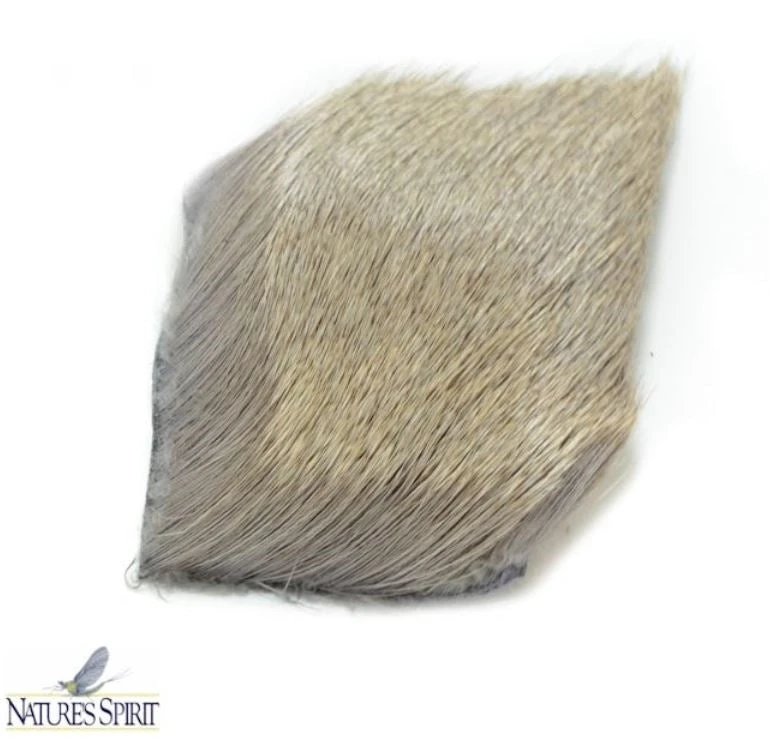 Nature’s Spirit travels to both Montana and Idaho selecting hides of the finest quality for fly tying purposes. This cow elk hair is a premium product and is perhaps the best all around fly tying hair. This flank hair is graded for straightness, short to medium tips and texture that allows for compression yet maintains shape.